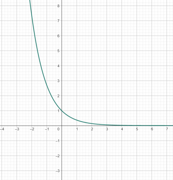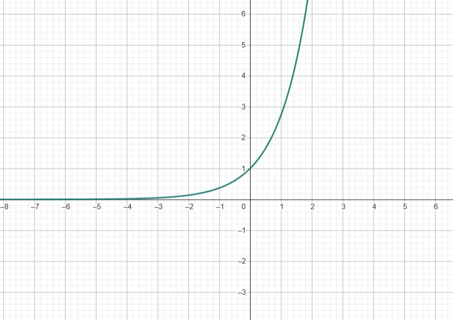 Eine weitere Möglichkeit die Funktion zu beeinflussen stellt ein Vorzeichen dar. Standartmäßig ist x² positiv kann jedoch auch negativ werden wenn wir ein - vor es setzen. Auch hier gibt es die Möglichkeit das x direkt oder die gesamte Funktion zu ergänzen. Da sich die Funktion x² für einen der Fälle nicht eignet wird das zweite Beispiel eine genauso ikonische Funktion nutzen ex. Diese sieht zur Erinnerung folgendermaßen aus: