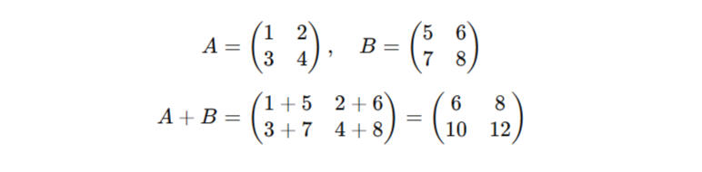 Wie normale Zahlen auch können Matrizen mit den verschiedenen Operatoren (+,- etc.) verrechnet werden. Es gibt jedoch einige Dinge zu beachten:+/- Matrizen können Addiert und subtrahiert werden. Hierbei werden alle Elemente auf der gleichen Position addiert/subtrahiert. Hierfür müssen die Matrizen die exakt gleichen Dimensionen besitzen, das heißt eine 2x2 Matrix kann nur mit einer anderen 2x2 Matrix addiert/subtrahiert werden. Eine addition/subtraktion einer Matrix mit einer einzelnen Zahl ist jedoch nicht möglich, nur mit anderen Matrizen.